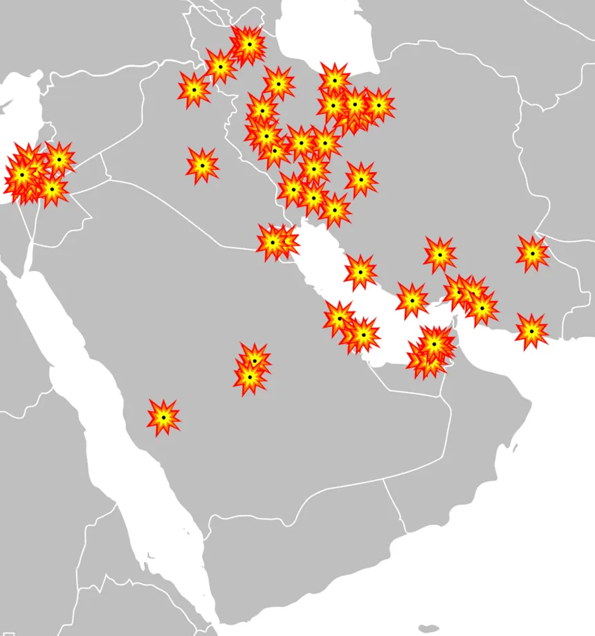 L’Iran ha reindirizzato gran parte del suo arsenale offensivo (stimato in 500 missili balistici e 2.000 droni) verso le nazioni della Penisola Arabica che ospitano basi militari o strutture diplomatiche degli Stati Uniti.